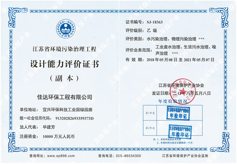佳達(dá)環(huán)保工程有限公司位于山清水秀、物產(chǎn)富饒的太湖之濱--(國家級)中國宜興環(huán)?萍脊I(yè)園。公司成立于1993年,是一家集產(chǎn)品開發(fā)、工程設(shè)計、生產(chǎn)制造、設(shè)備安裝、技術(shù)服務(wù)、運(yùn)維管理等功能為一體的綜合性環(huán)保公司。 公司二十多年來致力于環(huán)保事業(yè),匯集了一批經(jīng)驗豐富的工程技術(shù)人員及聲學(xué)、環(huán)境工程、給排水、暖通、機(jī)電和農(nóng)藝等多領(lǐng)域高中級工程師,多年來承接了大小幾千項環(huán)保工程,為客戶提供:技術(shù)咨詢、工程設(shè)計、設(shè)備制造、安裝調(diào)試和運(yùn)維客服等一條龍服務(wù)。項目包括:城市戶內(nèi)外變電站、交通、電廠、油機(jī)房等噪聲污染治理工程;工業(yè)廢水、礦井廢水、生活污水、地下水軟化、飲用水、工業(yè)用高純水、循環(huán)冷卻水、中水回用等水處理工程等。廢氣:VOCs綜合治理(包括EPC項目)的系統(tǒng)服務(wù)等。廣泛適用于輸變電、交通、造紙、印染、機(jī)械、電子、化工、醫(yī)藥、食品、石油、礦山等行業(yè)。 近幾年來,公司針對土壤修復(fù)積極儲備了多項國際、國內(nèi)的較先進(jìn)技術(shù),廣泛地開展了技術(shù)普及和工藝交流,重點是土壤原位修復(fù)技術(shù)。公司為適應(yīng)中國特色市場需求,進(jìn)行了一系列的實用技術(shù)研究與探索,并與以上原創(chuàng)技術(shù)的研發(fā)團(tuán)隊形成共識,達(dá)成合作,展開了多項技術(shù)應(yīng)用,更適用于場地和耕地的原位修復(fù)。 隨著我國生態(tài)環(huán)境管理的加強(qiáng),國內(nèi)很多地區(qū)的生態(tài)環(huán)境形勢嚴(yán)峻,特別是黑臭水體治理、滲坑治理、重點水源地上游及周邊的污水處理廠提標(biāo)改造等工程將不斷增多,社會需求隨即增加。公司將以市場為導(dǎo)向,集中優(yōu)勢資源,愿與社會各屆有識之士緊密合作,實現(xiàn)共贏。 公司依托浙大、南大、東大、哈工大雄厚的技術(shù)實力,嚴(yán)格管理,全方位滿足和服務(wù)于用戶。秉承以客戶為中心、以質(zhì)量為生命的宗旨;生產(chǎn)好每一臺產(chǎn)品、安裝好每一套設(shè)備、建設(shè)好每一項工程、服務(wù)好每一位客戶,不斷提高經(jīng)營水平和綜合實力。以過硬的工程質(zhì)量,合理的價格和優(yōu)良的售后服務(wù)贏得了國內(nèi)外良好的聲譽(yù),并獲得了諸多國家專利。經(jīng)過二十多年發(fā)展與積累,已取得環(huán)保工程專業(yè)承包壹級、建筑機(jī)電專業(yè)承包叁級、環(huán)境工程設(shè)計能力乙級、環(huán)境污染治理能力乙級、安全生產(chǎn)標(biāo)準(zhǔn)化三級等資格證書,已成為產(chǎn)品研發(fā)、設(shè)計、制造、工程施工、售后服務(wù)于一體的綜合公司。 歷年來公司始終堅持誠信經(jīng)營,遵循“客戶至上、信譽(yù)第一、質(zhì)量第一、安全第一”的經(jīng)營方針,對產(chǎn)品質(zhì)量精益求精,不斷提高企業(yè)形象。公司全員愿為“生態(tài)環(huán)境、綠色環(huán)!倍暙I(xiàn)一份微薄之力。